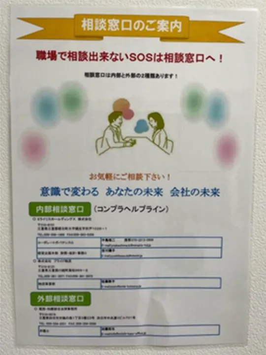 平成30年9月には全国健康保険協会愛知県支部の「健康宣言チャレンジ事業所」にも認定して頂き、前向きに従業員の健康維持に取組んでいます。最近は、ミライリスホールディングス主催の「健康チャレンジ」にも皆で参加し、不健康にならない身体作りを日々行っています。メンタルケアにおいても相談窓口が社内・社外設置されており気軽に相談できる環境が整っています。