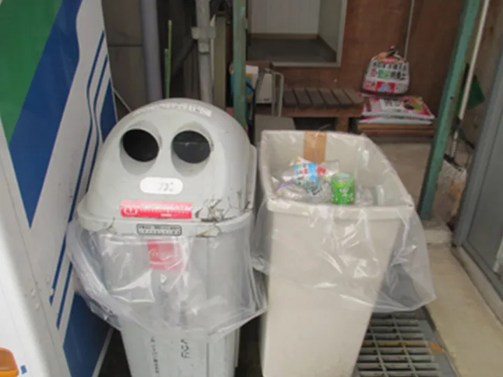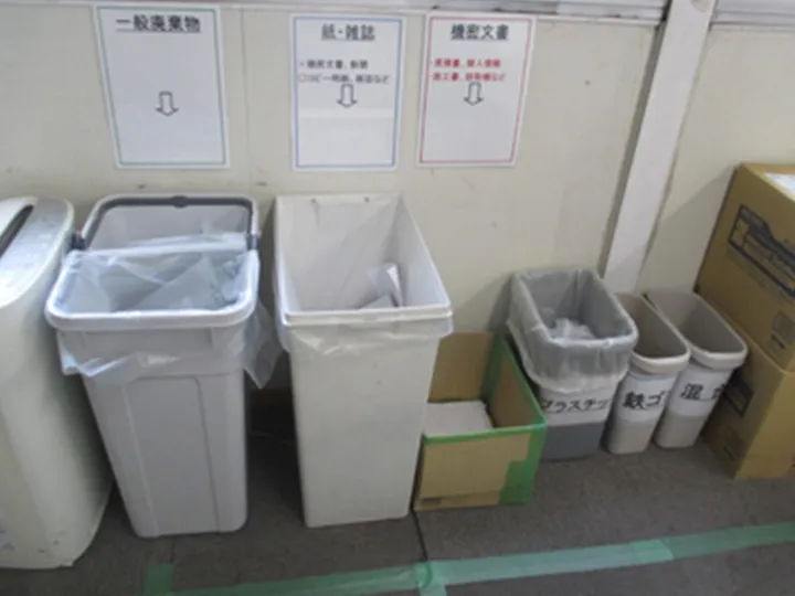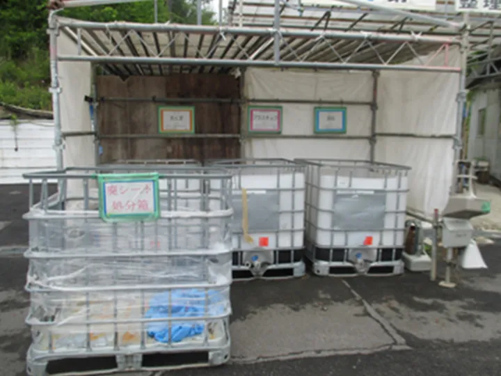 現場や社内で出たごみは、“社内で再利用可能な物”は再利用、ゴミに関しては“燃えるゴミ”“紙ゴミ”“木くず”“プラスチック”等細かく分別しリサイクル業者等に回収してもらっています。ペットボトルを捨てる際は、キャップ・ラベルを外して捨てる取組も実施中。